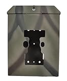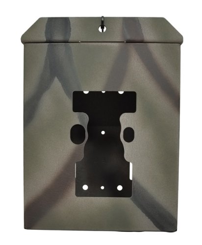Security Boxes That Fit Moultrie D55 Style Lockboxes that fit Moultrie D55,D55IR, cameras are made of all steel construction with baked on powder coat finish, then a camo break paint is applied. They can be screwed to a tree, (or they can be bungeed and a python cable can be added for hunting on public land as an additional option), and have plenty clearance for large headed lag bolts. All boxes are lockable for added security. There are holes cut for the additional battery pack option. These boxes add security to theft and also eliminate animals from chewing on your camera. Once the box is screwed or secured to the tree the camera can be taken in or out without any repositioning or rerunning of test cycles. The camera will always point back to the same spot. Feel free to contact us with questions. Camera and Python cable are not included in this sale.