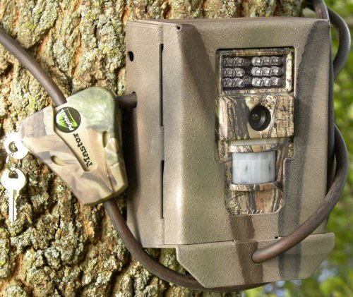Lockboxes that fit Wildgame Innovation X6C and X6CG are made of all steel construction with baked on powder coat finish, then a camo break paint is applied. These are very high-quality boxes made from heavy 16-gauge steel. This box can be bungeed to a tree then wrapped with a python cable where lag bolts are not allowed . This box allows the use of a lock or python cable. Camera and Python cable not included in this sale.